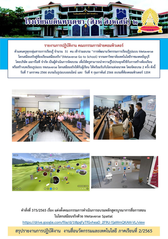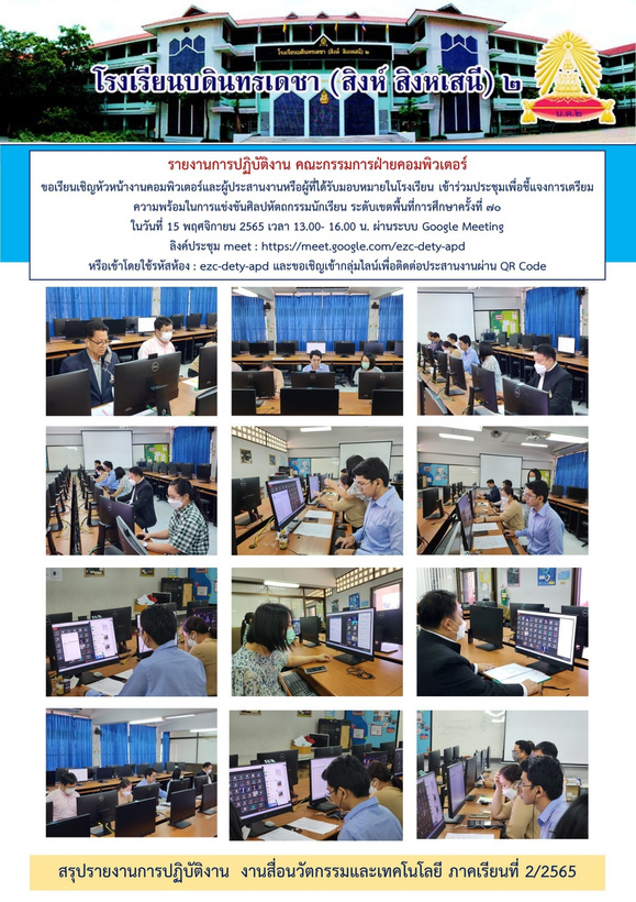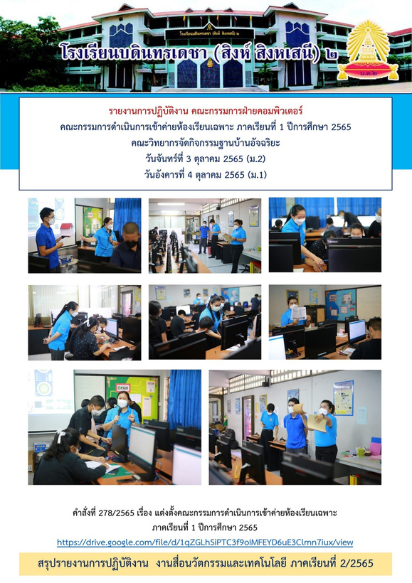 ภาคเรียนที่ 2 ปีการศึกษา 2565 รวมจำนวน 20 ชั่วโมง/สัปดาห์ดังนี้