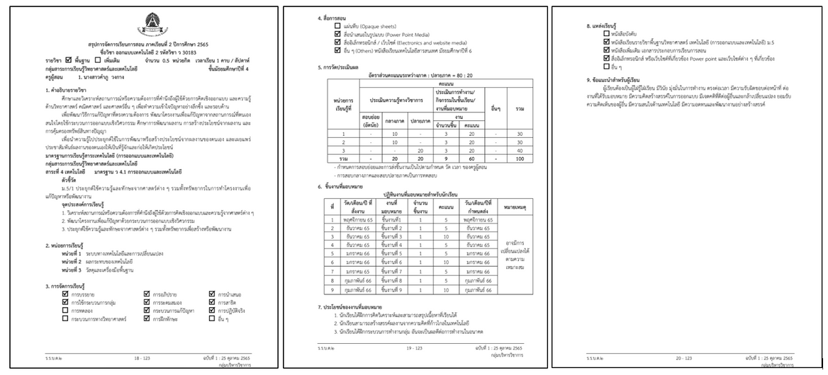 ภาคเรียนที่ 1 ปีการศึกษา 2566 รวมจำนวน 18 ชั่วโมง/สัปดาห์ดังนี้